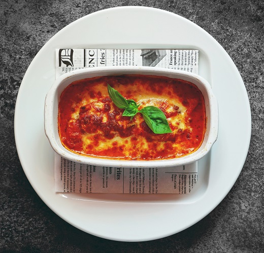 Baked bell pepper with tomatoe sauce and yellow cheese